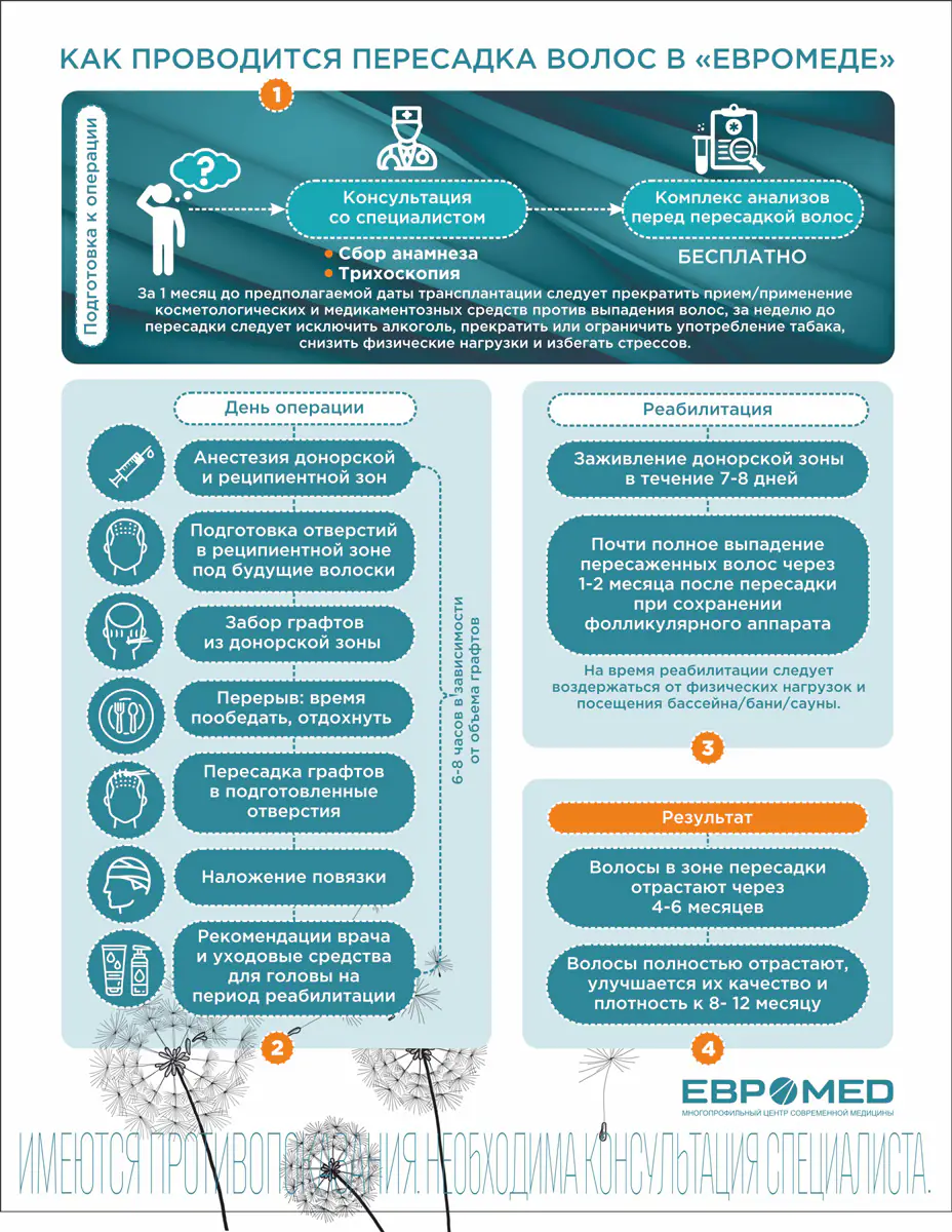 Трансплантация волос в «Евромеде» по современной бесшовной технологии FUE проводится мужчинам и женщинам в любом возрасте.