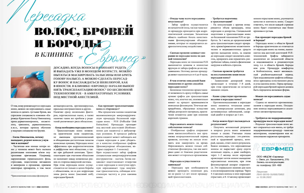 «Результат трансплантации волос может сохраняться всю жизнь»: врач «Евромеда» рассказала о пересадке волос в Омске